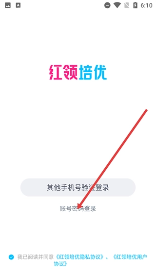 1、进入【红领培优】的登录选择界面后,点击【账号密码登录】这一选项,即可进入对应的登录页面。