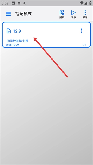 4、保存笔记后,在【笔记模式】列表里能查看已保存的笔记(包含日期【2025-12-09】),还可以开展后续的管理操作。