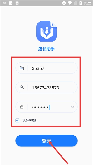 2、进入【店长助手】的登录界面,填写好相应信息后勾选【记住密码】选项,在确认信息准确无误后,点击【登录】按钮即可完成登录流程。