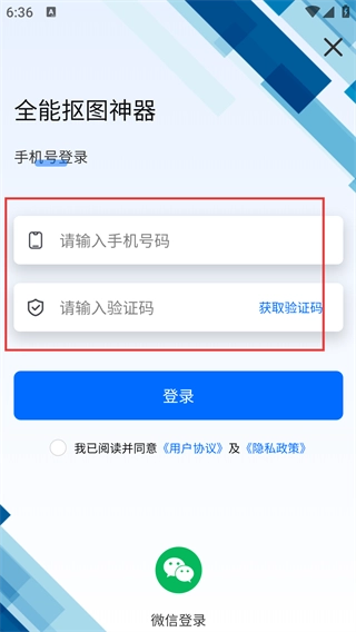 4、进入账号登录页面后,在【请输入号码】处填写对应信息并获取验证码,勾选相关协议,随后点击【登录】按钮,即可完成账号登录流程。