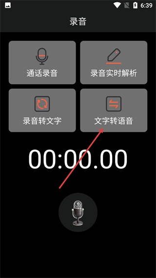 1、在录音功能页面,点击【文字转语音】选项,进入文字转语音操作界面,即可把文本转换成音频。