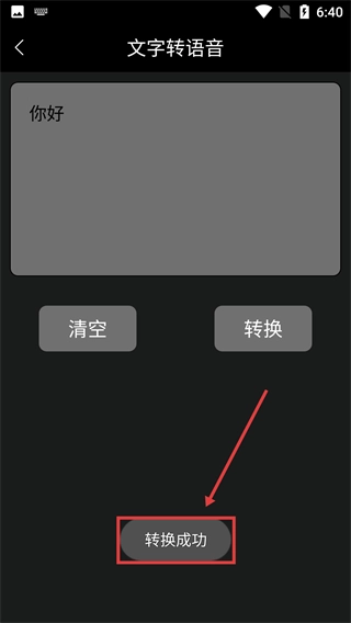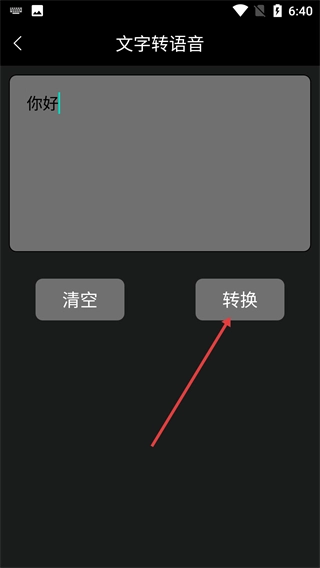 3、在输入框内填入目标文字(例如“你好”),点击【转换】按钮,即可开启文字转语音的转换流程。