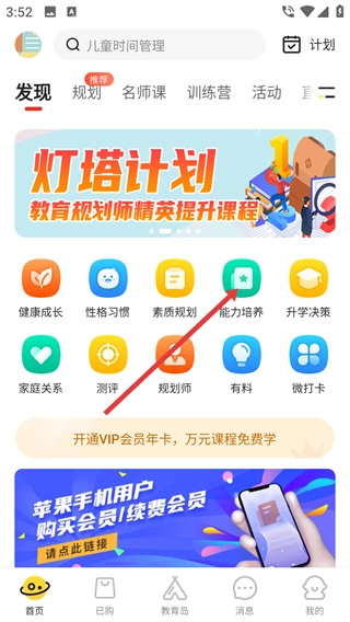 1、在应用首页找到“能力培养”选项并点击,即可进入能力培养的课程分类页面。
