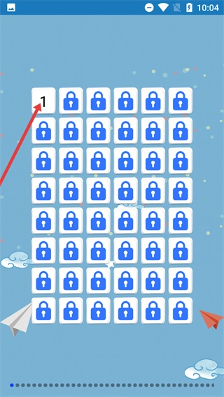 进入【英语习题】模块后,会看到关卡列表,目前只有【1】关卡处于解锁状态,点击该关卡就能进入对应的习题练习环节。