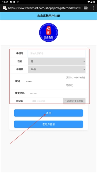 3、在注册页面依次填写【号】【性别】【年龄段】,设置密码并重复输入以确认,填写验证码后点击【注册】按钮,即可完成新用户账号的创建。