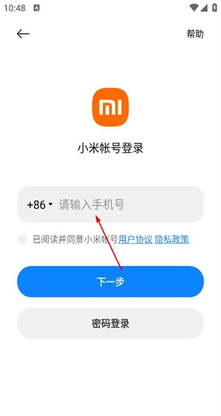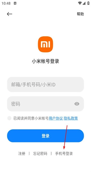 3、在小米账号登录页面,点击“号登录”选项,即可切换到号登录的信息填写界面。