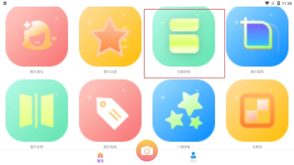 1、在首页功能区找到并点击【长图拼接】选项,进入对应的功能页面后,就能把多张图片拼接成一张长图。