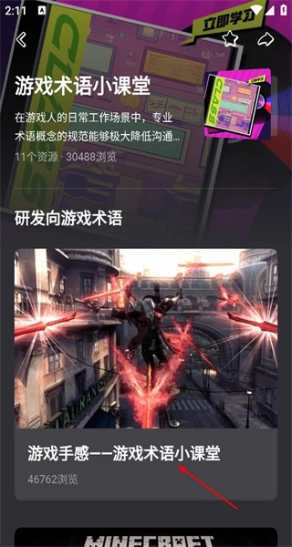2、进入专题页面后,找到术语小课堂的内容板块,点击进入即可查看该课程的详细内容列表界面。