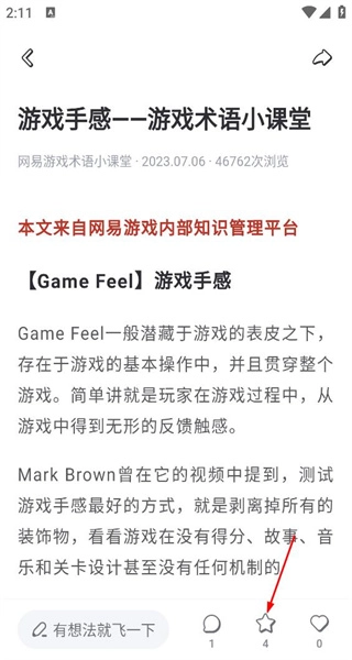 4、进入手感详情页面,查看内容介绍,了解手感的定义以及相关分析内容。