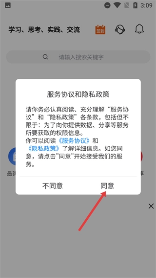 1、仔细阅读《服务协议》与《隐私政策》的条款内容后,点击弹窗里的【同意】按钮,即可进入应用的功能界面。