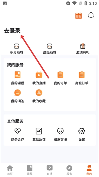 2、进入“我的”页面后,点击【去登录】选项,即可跳转至账号登录界面。