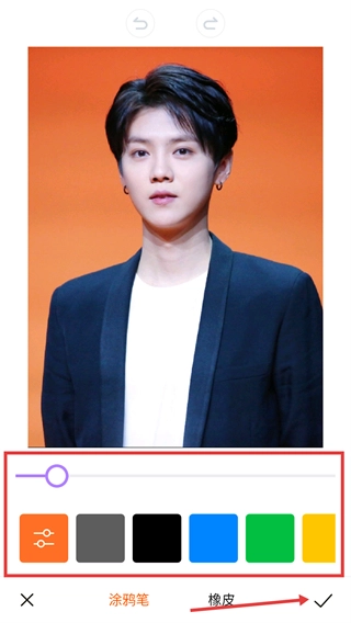 3、进入涂鸦编辑界面后,你可以调整画笔的粗细、挑选合适的颜色,借助【涂鸦笔】进行创作,创作完成后点击对勾按钮来确认操作。