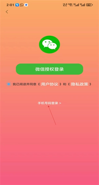 3、进入登录页面后,找到微信授权登录选项,点击号码登录,即可切换至号登录页面。