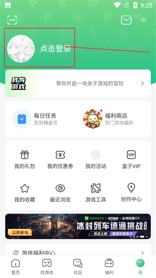 2、进入个人中心页面后,点击【点击登录】区域,即可触发账号登录流程,后续可选择多种登录方式继续操作。
