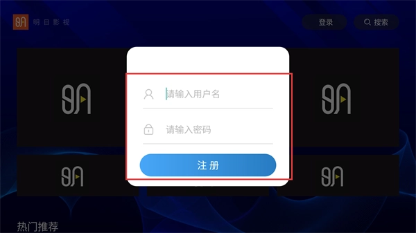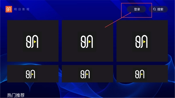 1、打开【明日-影视】的首页后,顶部能看到【登录】和【搜索】两个按钮,页面下方则展示着【热门-推荐】板块,用户可以在这里浏览相关内容。