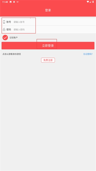 3、在登录页面,依次填写【请输入账号】和【请输入密码】这两个输入框,勾选【记住账户】选项后,点击【立即登录】按钮即可完成登录操作。