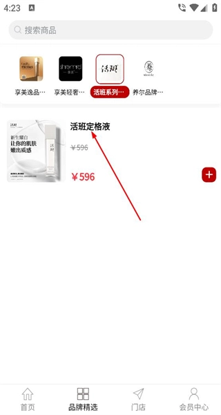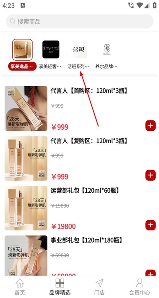 2、点击“品牌精选”,能看到各类分类标签,选中对应的分类后,页面会呈现该分类下的商品,每件商品旁边都设有购买按钮。