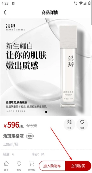 4、进入商品详情页后,可查看商品介绍、价格等相关信息,页面底部设有加入购物车和立即购买按钮,支持直接进行购买操作。