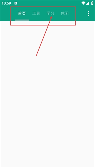 1、顶部设有【首页】【工具】【学习】【休闲】选项,点击相应选项即可切换功能模块,目前【学习】模块处于选中状态。