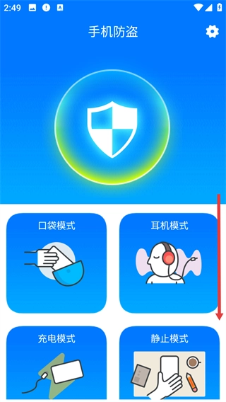 1、在【防盗】主界面,能够选择【口袋模式】【耳机模式】等多种不同的防盗模式,根据实际需求开启对应场景下的防护功能。