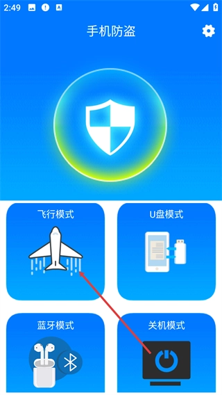 2、滑动页面可以查看更多模式选项,选择【飞行模式】就能进入对应的防盗防护设置界面。