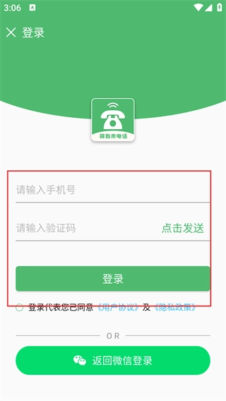4、进入登录页面后,在【请输入号】的输入框中填写信息,点击【点击发送】按钮来获取验证码,勾选相关协议后,点击【登录】按钮即可完成登录操作。
