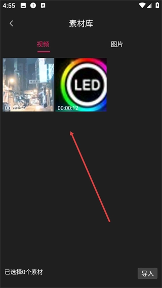 4、在素材库的【视频】分类下,挑选目标视频素材,选定后点击【导入】按钮,即可将该素材添加到模板里。