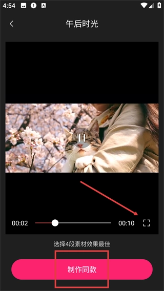 3、在确认模板效果无误后,点击【制作同款】按钮,即可进入素材选择环节,这样就能添加与模板风格相契合的素材了。
