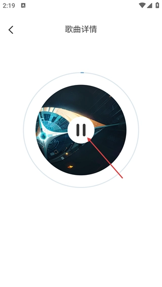 4、播放电音歌曲时,点击封面中间的【暂停】按钮,就能暂停当前播放的音乐,以便根据需要控制歌曲的播放状态。