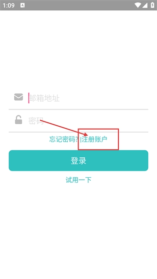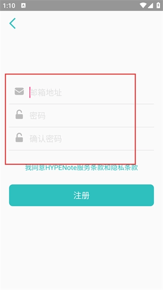 2、打开HYPENote应用的登录界面,选择【注册账户】选项,即可启动HYPENote的账号注册流程。