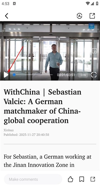 4、进入视频播放界面后,找到WithChina系列的相关内容,点击播放按钮,即可准备查看其详细内容。