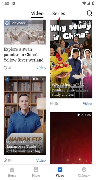 2、进入Video页面后,会看到包含天鹅栖息地等内容的多个视频条目,点击Series按钮,就能切换视频板块。