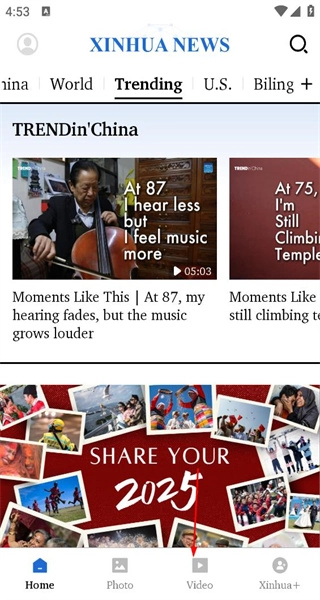 1、启动软件后,进入主界面,找到Trending分类下的内容,点击底部的Video选项,切换到视频页面。