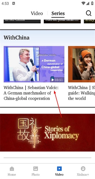 3、在Series页面里找到WithChina系列视频,点击Sebastian相关的视频条目,进入它的详情界面。