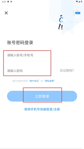 3、在【账号密码登录界面】,填写账号和密码后,点击【立即登录按钮】。