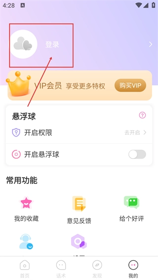 2、进入【我的】页面后,点击页面上方的【登录】区域,系统会弹出登录操作的弹窗,此时可准备进行账号登录或注册操作。