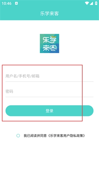 2、进入【乐学来客】的登录界面,在【用户名/号/邮箱】和【密码】对应的输入框中填写信息,之后点击【登录】按钮,即可完成登录流程。