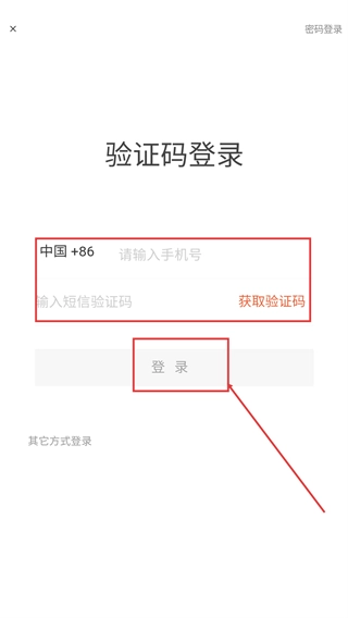 2、若选择验证码登录方式,在对应页面填写号码,点击“获取验证码”并输入收到的验证码后,点击【登录】按钮即可完成验证。