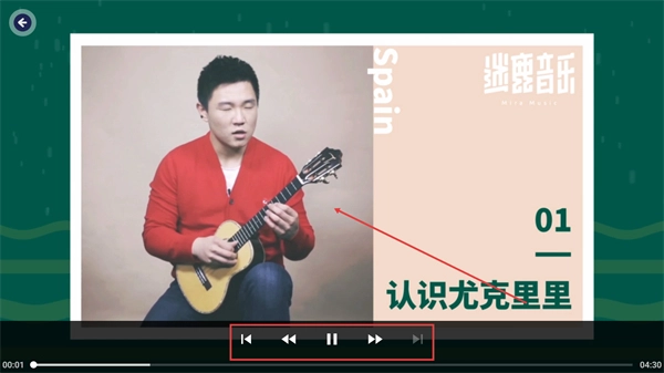 3、进入课程详情页后,点击课程卡片上的【播放】按钮,即可开始观看“认识尤克里里”的教学视频。