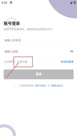 3、进入账号登录页面后,要是还没有注册账号,就点击【立即注册】选项,切换到注册流程。