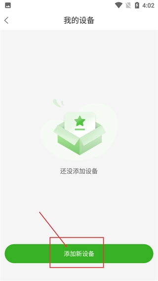 3、进入我的设备页面后,如果页面显示尚未添加设备,可点击页面底部的【添加新设备】按钮,开启设备添加流程。