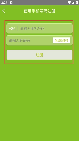 3、进入“使用号码注册”页面后,先输入号码,接着点击【发送验证码】并填写收到的验证码,最后点击【注册】按钮,即可完成账号注册。