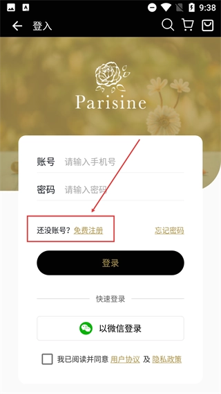 2、在登录界面,要是还没有账号,点击【还没账号?注册】这个选项,就能进入账号注册的流程。
