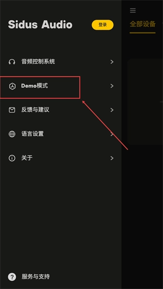 2、进入【Sidus-Audio】菜单,找到并点击【Demo模式】选项,即可进入相应功能模式开展操作。