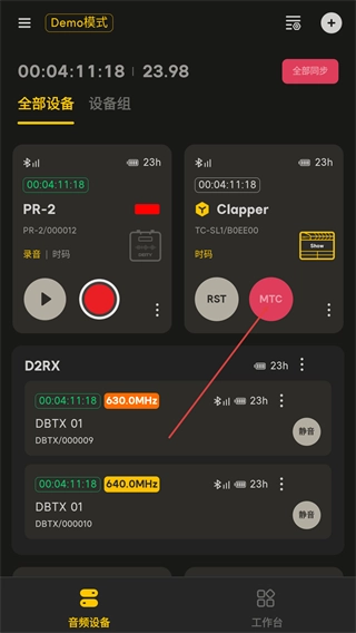 3、在【Demo模式】的设备列表里,找到【Cler】设备,点击它对应的【MTC】按钮,以此触发相关功能。