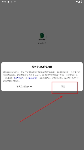 1、阅读【服务协议和隐私政策】相关内容后,点击弹窗里的【同意】按钮,完成协议确认即可继续后续操作。