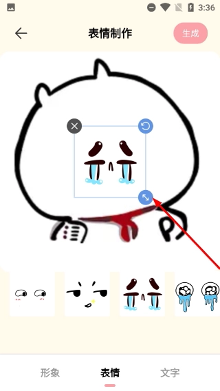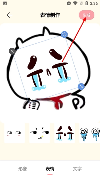 4、完成表情元素的添加与调整后,点击右上角的【生成】按钮,就能完成表情的制作。