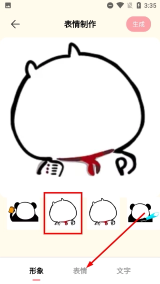 2、进入【表情制作】页面后,先挑选基础形象模板,接着切换至【表情】标签页,为后续的编辑工作做好准备。
