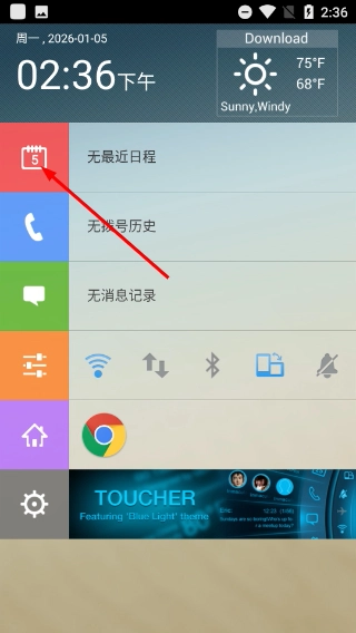 1、在桌面界面里,找到【日历】图标,向右滑动就能进入日程管理模块,进而查看或添加日程安排。