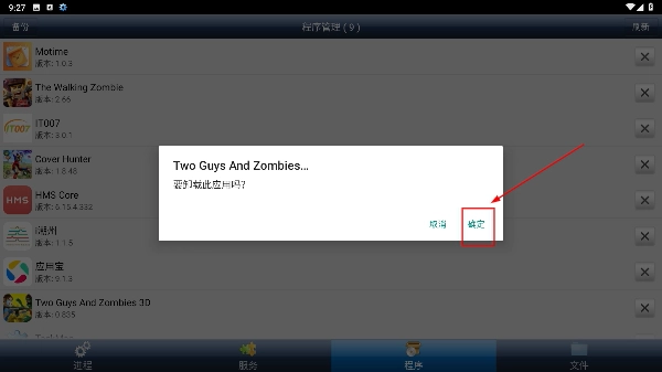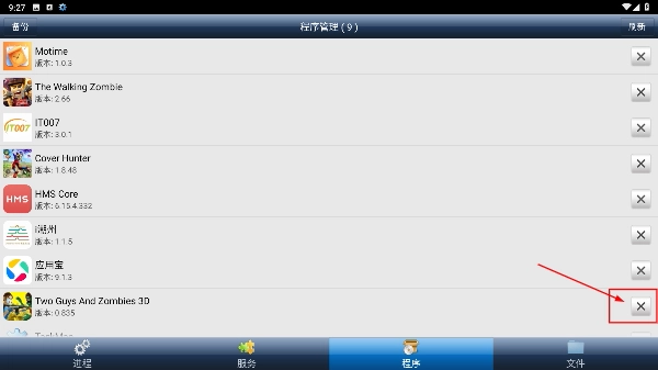 2、进入【程序】页面后,选择需要进行操作的项目,点击该项目右侧的叉形按钮,即可触发对应的操作流程。